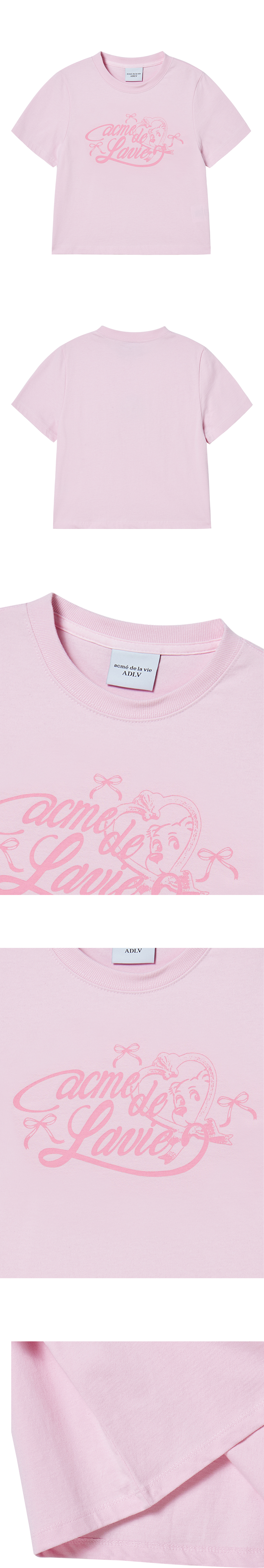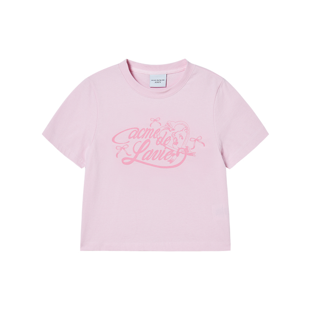 WOMAN MIRROR AC BEAR CROP SHORT SLEEVE T-SHIRT LIGHT PINK