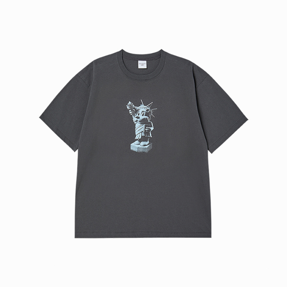 AC BEAR STATUE OF LIBERTY SHORT SLEEVE T-SHIRT CHARCOAL